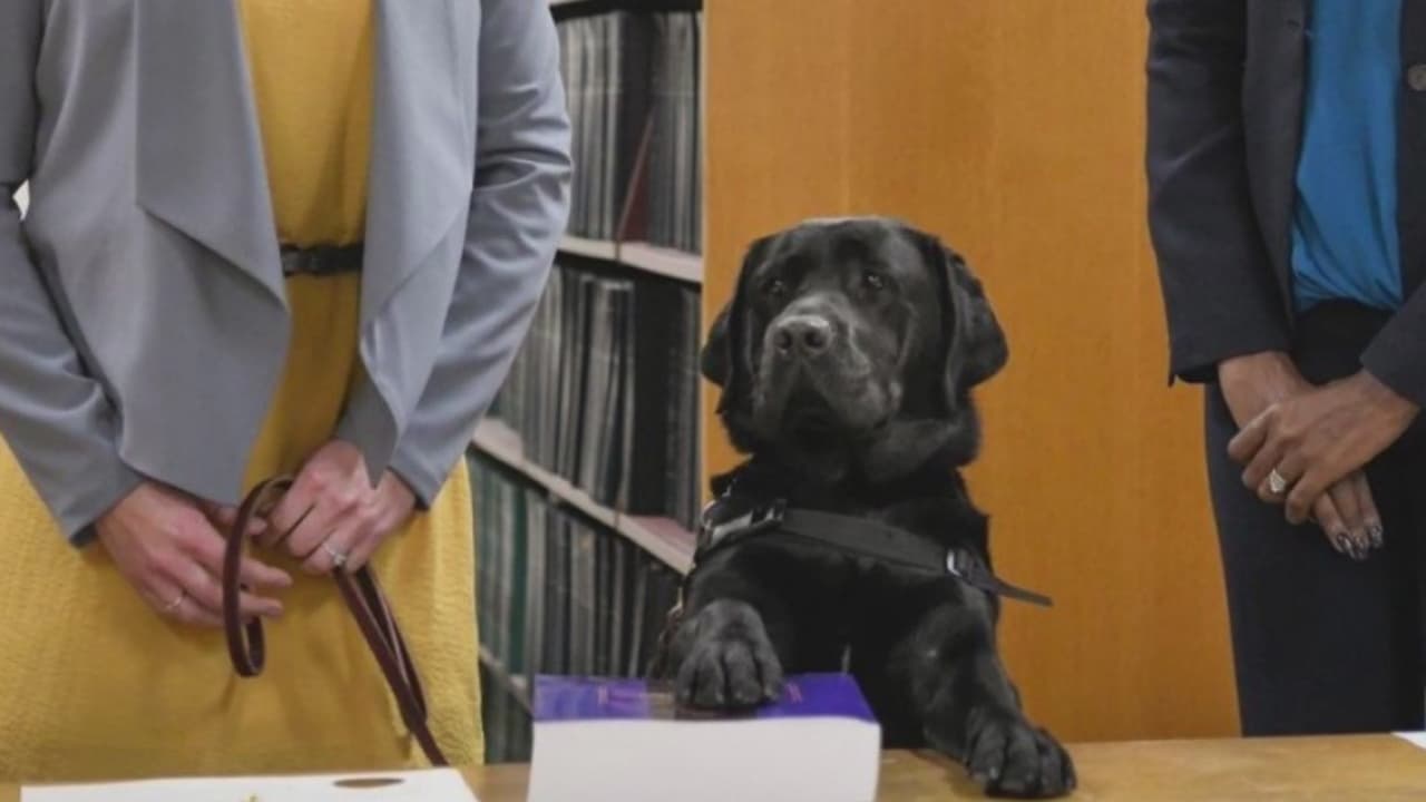 El perro que juramentó en Illinois para ayudar a las víctimas de abuso sexual y violencia