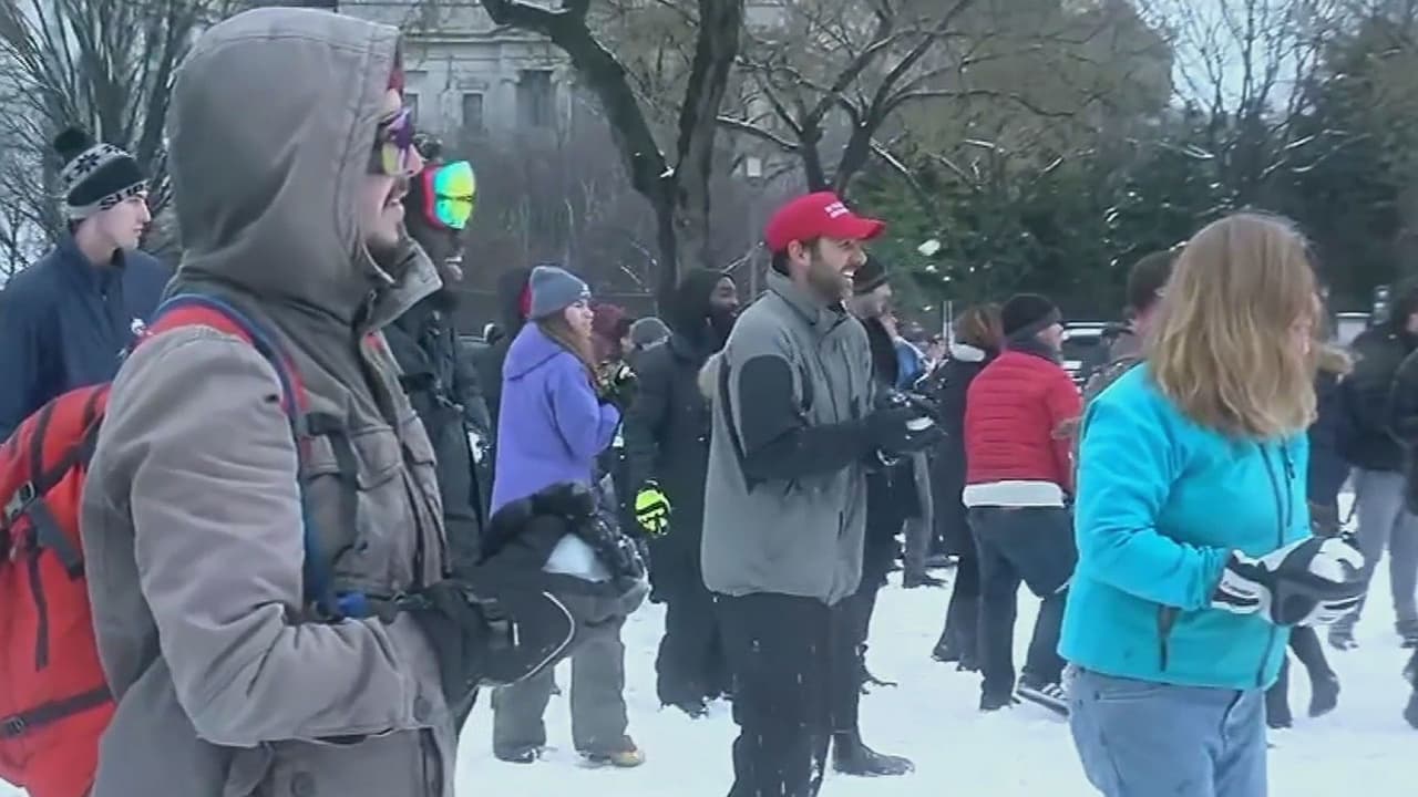 En video: Decenas de personas en Washington reciben la primavera jugando aún con la nieve