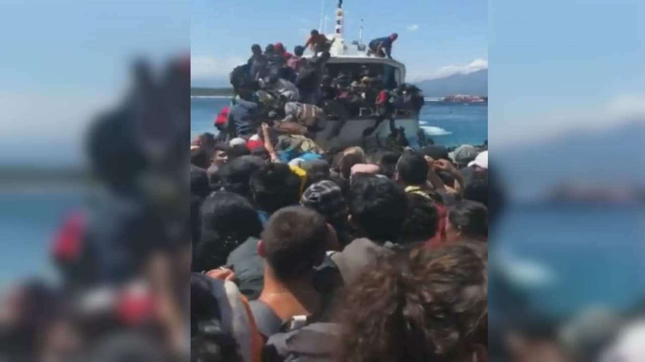 En las imágenes se puede ver a las personas amontonadas en las playas intentando subirse a un barco para ponerse a salvo. Autoridades de la isla indicaron que no hay suficientes embarcaciones para evacuar rápidamente a todos los que esperan.