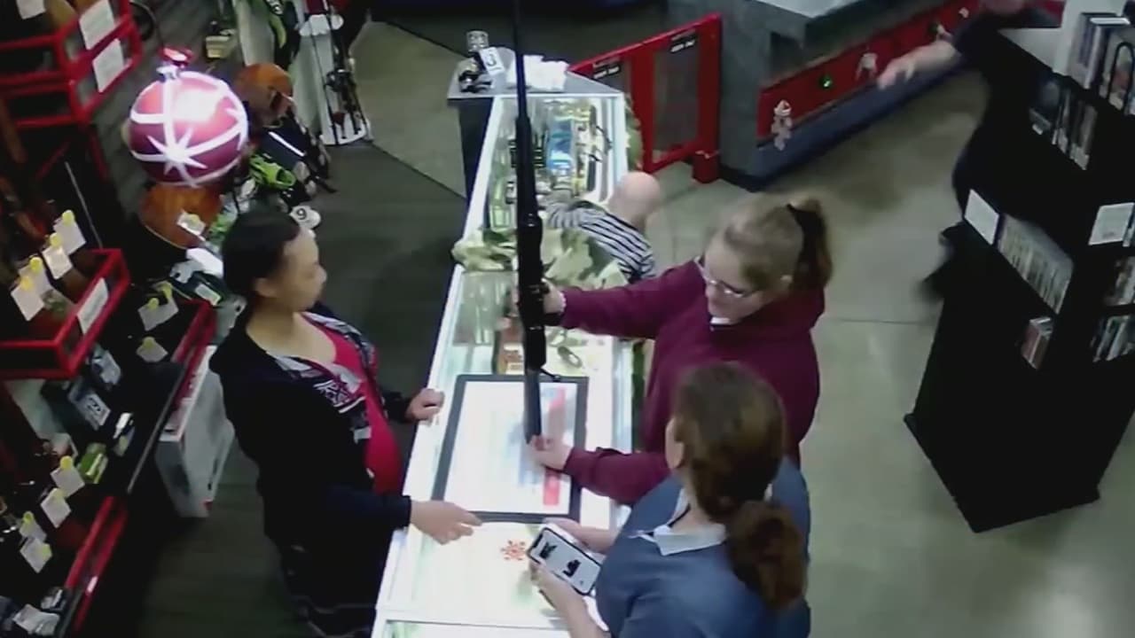 En video: El momento en que un bebé casi se cae del mostrador de una tienda de armas en Utah