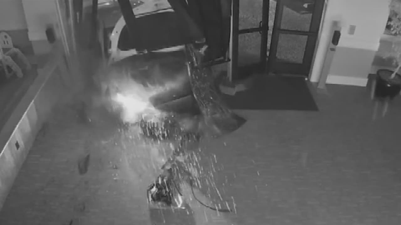 Dos hombres se dieron a la fuga a alta velocidad en un auto robado y se estrellaron contra la puerta de una iglesia en Carolina del Norte. Un video de seguridad muestra cuando los sospechosos salen del vehículo y huyen a pie. Los daños ocasionados ascenderían a más de 25,000 dólares. No dejes de ver: Persecución policial a más de 100 millas por hora queda captada en video: el conductor tenía cocaína.