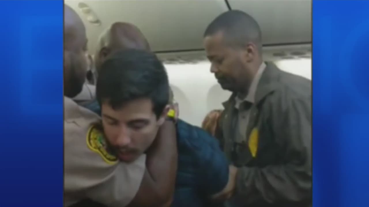 En video: Policía baja a la fuerza a pasajero señalado de insultar a una pareja en un avión de American Airlines