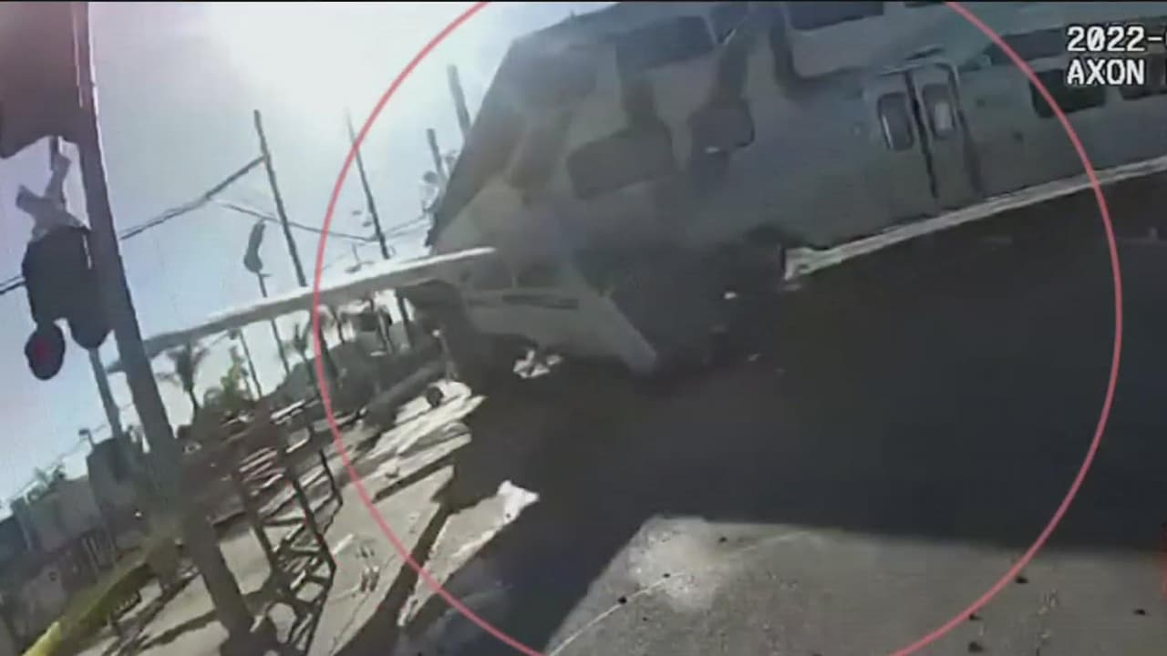 Un piloto atascado en una avioneta, luego de realizar un aterrizaje forzoso en unos rieles en Los Ángeles, fue rescatado por agentes de la policía justo antes de que un tren a toda velocidad se impactara contra la aeronave. Ver más noticias aquí.