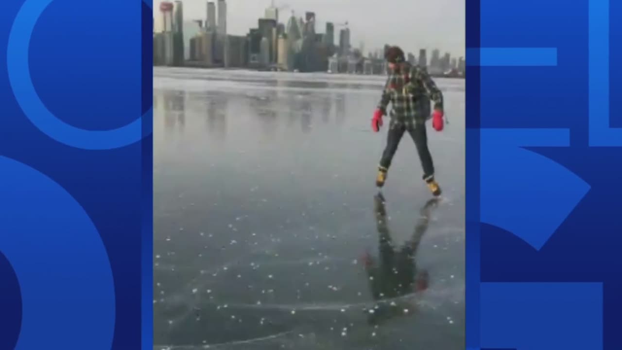 En video: Un hombre se divierte patinando sobre un puerto congelado por el frío en Canadá