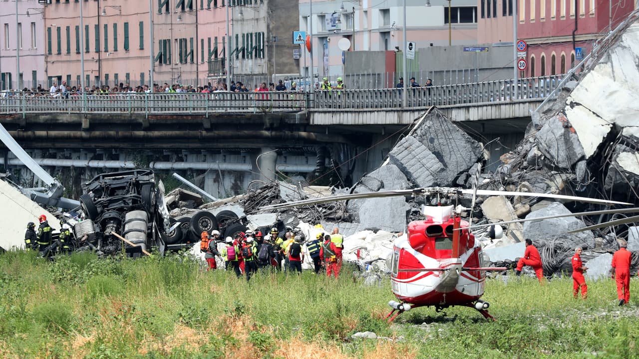 Equipos de socorro buscan a sobrevivientes tras el colapso de un puente en Italia