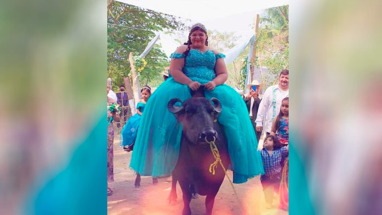 Con su elegante vestido y acompañada de su familia, Bárbara Monserrat hizo un recorrido en búfala desde la iglesia hasta la vivienda donde celebraría sus 15 años en un municipio de Veracruz, México. La joven dice que sintió nervios por una posible caída, pero recuerda con una sonrisa su celebración.