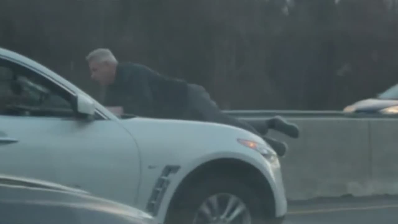 Hombre se trepa a un auto en medio de una autopista en Massachusetts