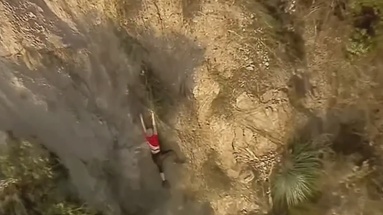 Impresionante rescate: bomberos atrapan a una mujer que colgaba de un acantilado