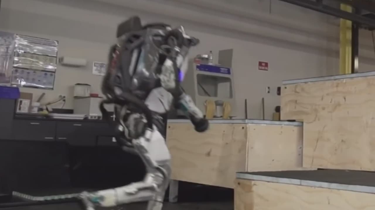 Usuarios de las redes quedaron impresionados con Atlas, el robot humanoide que ahora salta un tronco y brinca cajas escalonadas como un experto.