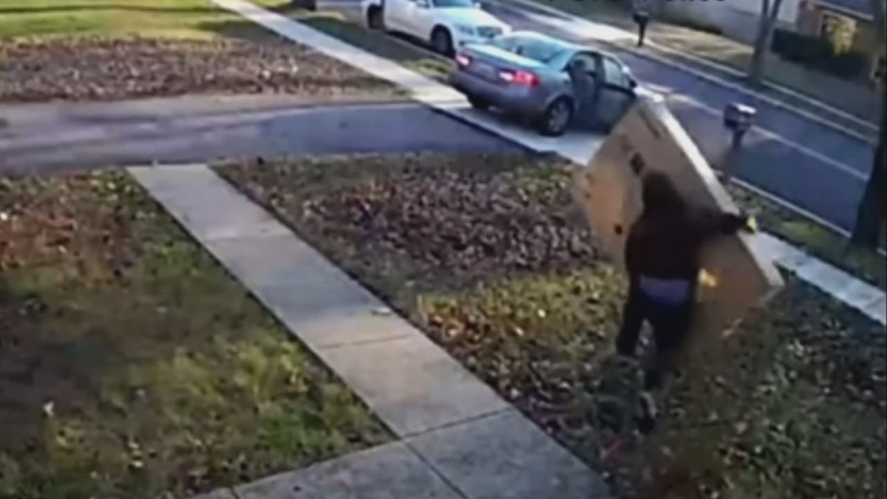 Una cámara de vigilancia captó el momento en el que el criminal se llevó una enorme caja con un televisor del patio de una casa. En las imágenes se puede ver al sujeto correr con la caja y luego sufrir porque no podía meterla en su vehículo porque era demasiado grande.