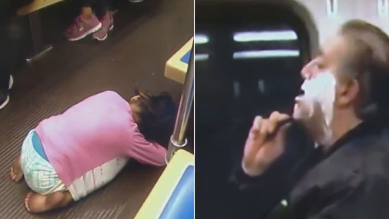 En el primer video se observa a una familia hispana con seis hijos durmiendo dentro de un tren en Chicago; una mujer les dio dinero y al parecer, después de la publicación en redes, ya reciben ayuda. En el segundo video se ve a un hombre afeitándose en un tren de Nueva Jersey, quien explicó que estaba pasando por una complicada situación económica.