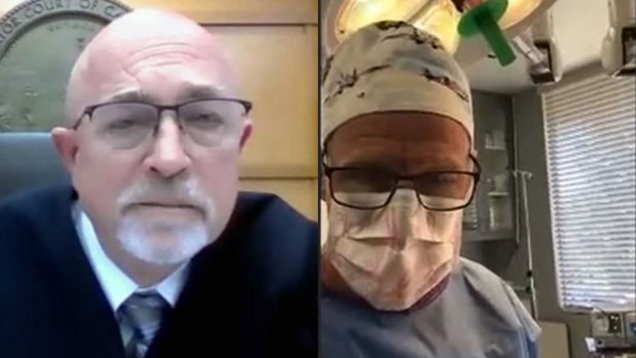 El doctor Scott Green se conectó a la audiencia desde una sala de operaciones. Y aunque su interés era continuar con la videoconferencia, el juez consideró que no era apropiado y pospuso su comparecencia. La Junta Médica de California está investigando el incidente.