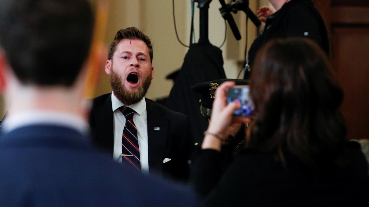 Manifestante a favor de Trump interrumpe audiencia del comité que revisa pruebas para el impeachment