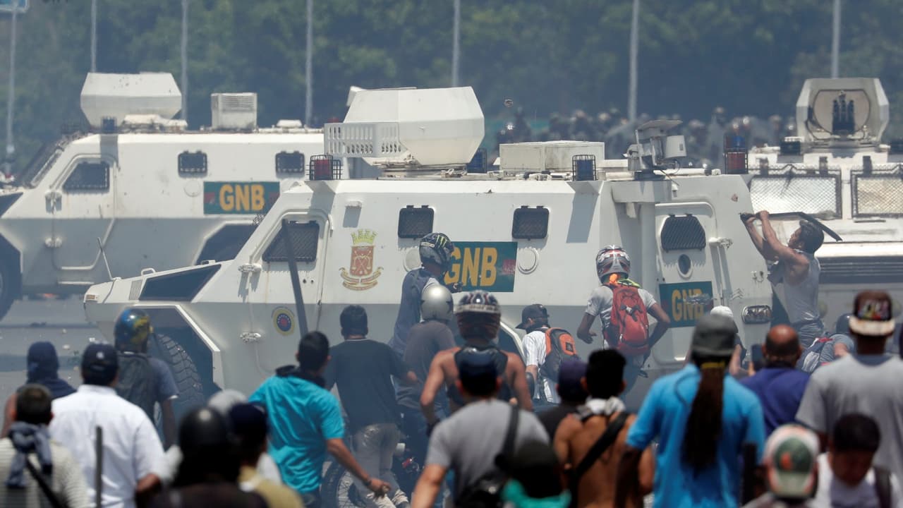 Gran parte de las manifestaciones tomaron lugar en esta zona, donde también estuvo el presidente encargado de Venezuela Juan Guaidó y el líder opositor Leopoldo López. Hasta las 2:00 pm ET, había 11 personas detenidas como producto de los enfrentamientos.