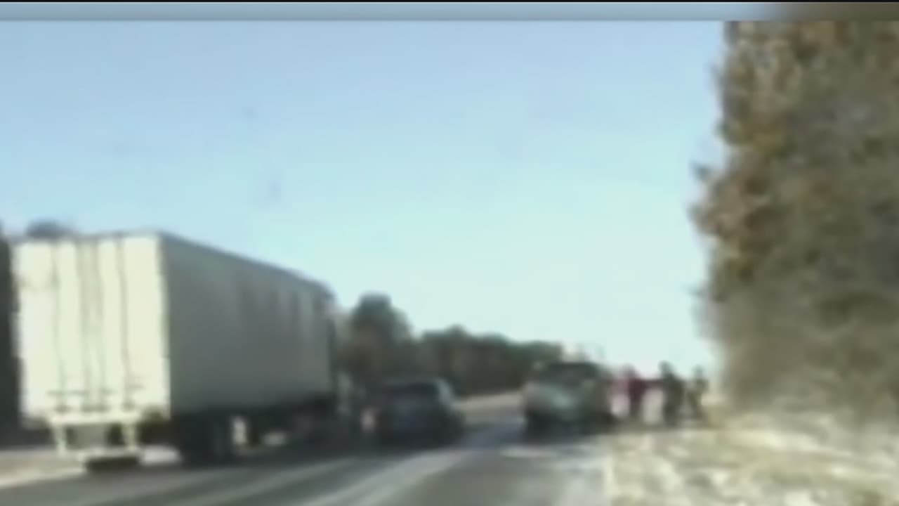 Los uniformados asistían a la mujer varada a orillas de la Interestatal 64 de Illinois cuando de repente, y a sus espaldas, un camión se vuelca y se desliza sobre las vías congeladas directamente hacia ellos.