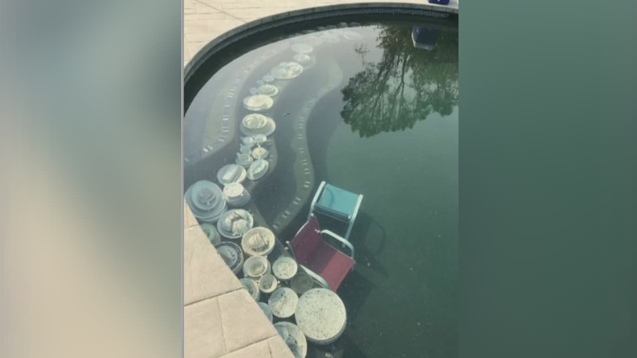 Una de sus pertenencias más preciada es una vajilla china, que sumergieron en la piscina para protegerla de los incendios que azotan el área de su vivienda.