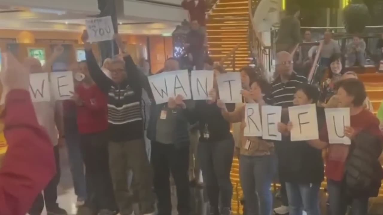 Pasajeros furiosos protestan dentro de un crucero de Norwegian Cruise Line