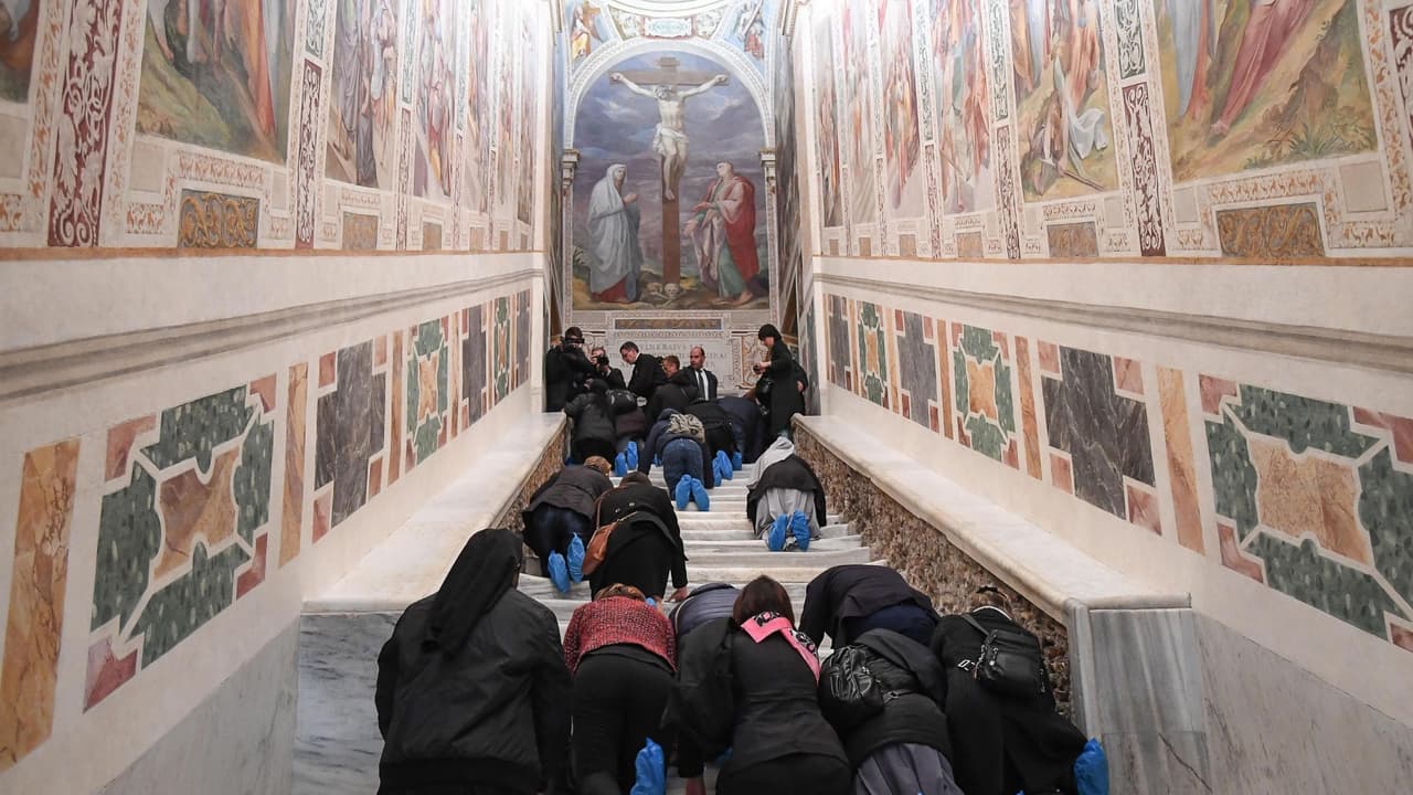 Por primera vez en 300 años, exhiben la escalera por la que subió Jesús el día que fue sentenciado a morir en la cruz