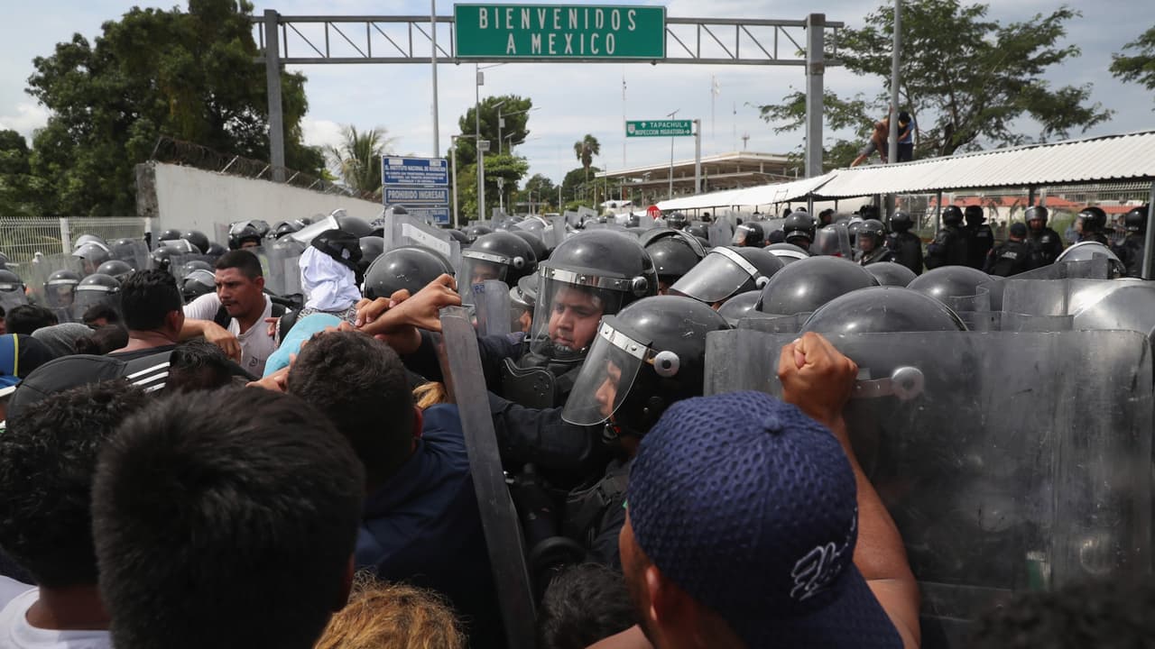 Cientos de hondureños insisten en cruzar el río Suchiate pese a las detenciones y a los enfrentamientos contra las autoridades fronterizas.