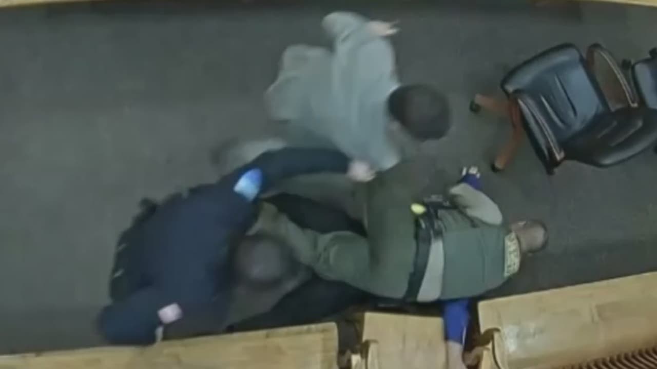Preso intenta quitarle el arma a un oficial durante su propio juicio