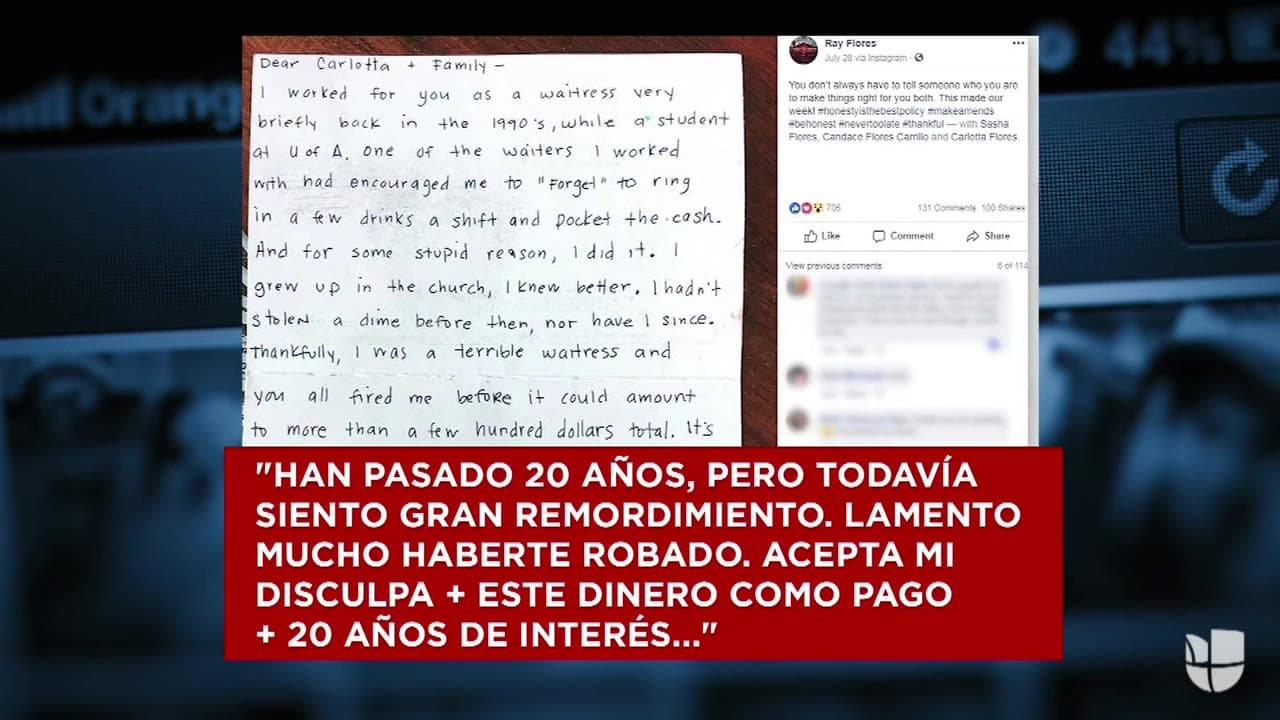 Una mujer robó de un restaurante mexicano pero años después envió una carta a la dueña del lugar pidiendo perdón y ofreciendo una recompensa.
