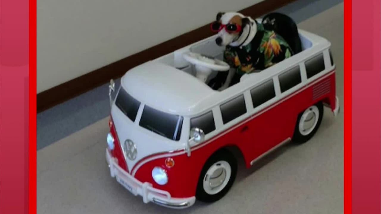 El perrito, vestido con accesorios de Navidad, se pasea en su carrito por el hospital. Los dos perros utilizados para esta terapia les sacan sonrisas a pacientes y familiares, en momentos de absoluta dificultad.