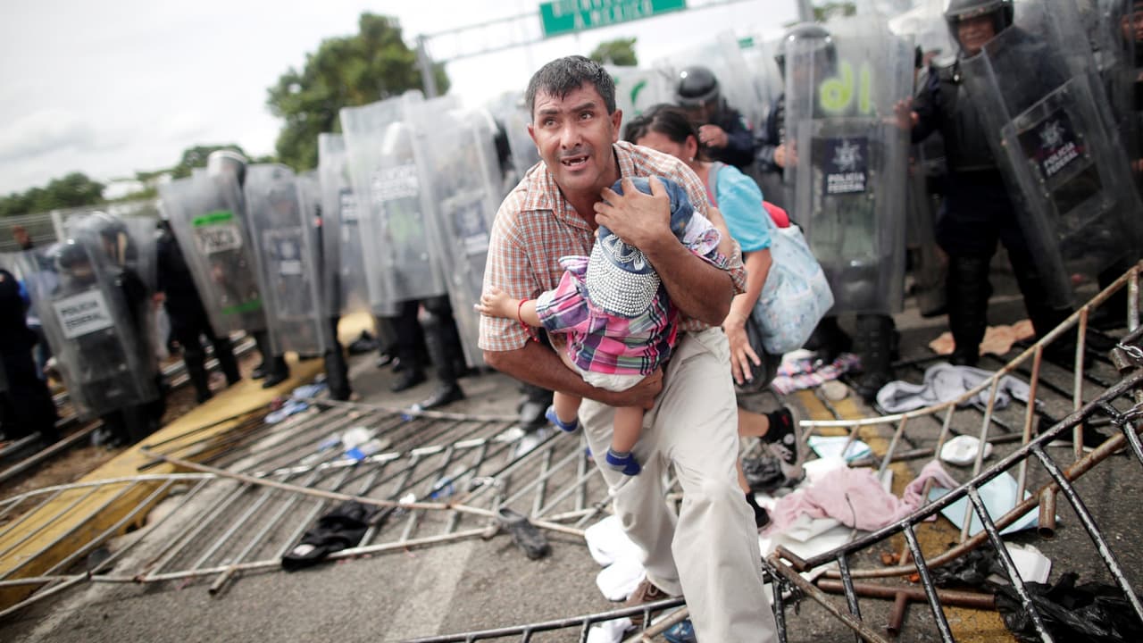 Varios niños y adultos sufrieron lesiones durante el paso forzado de la caravana de migrantes centroamericanos. Autoridades mexicanas indicaron que intentan controlar la situación y se dará acceso de manera organizada.