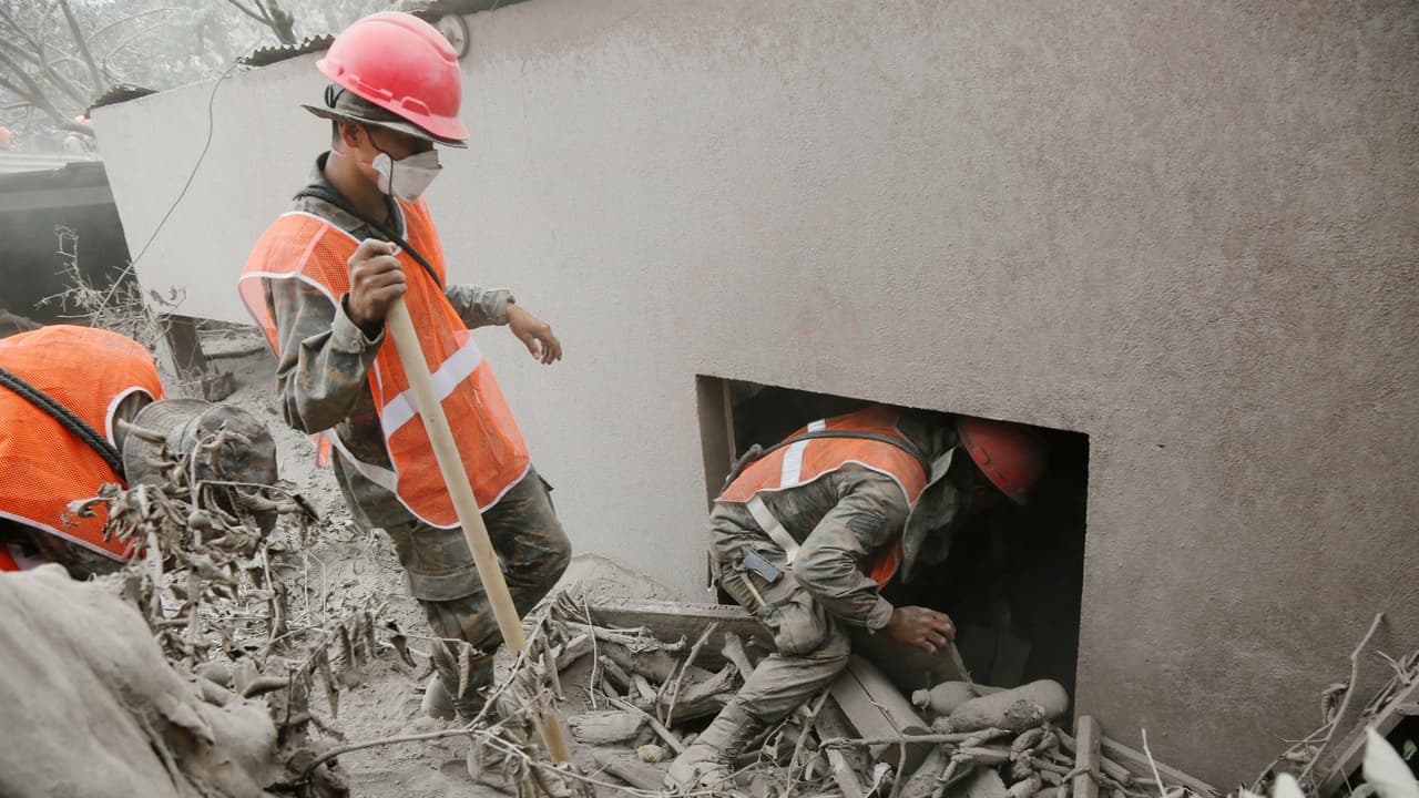 Socorristas mantienen labores de búsqueda y rescate en áreas afectadas por el volcán de Fuego