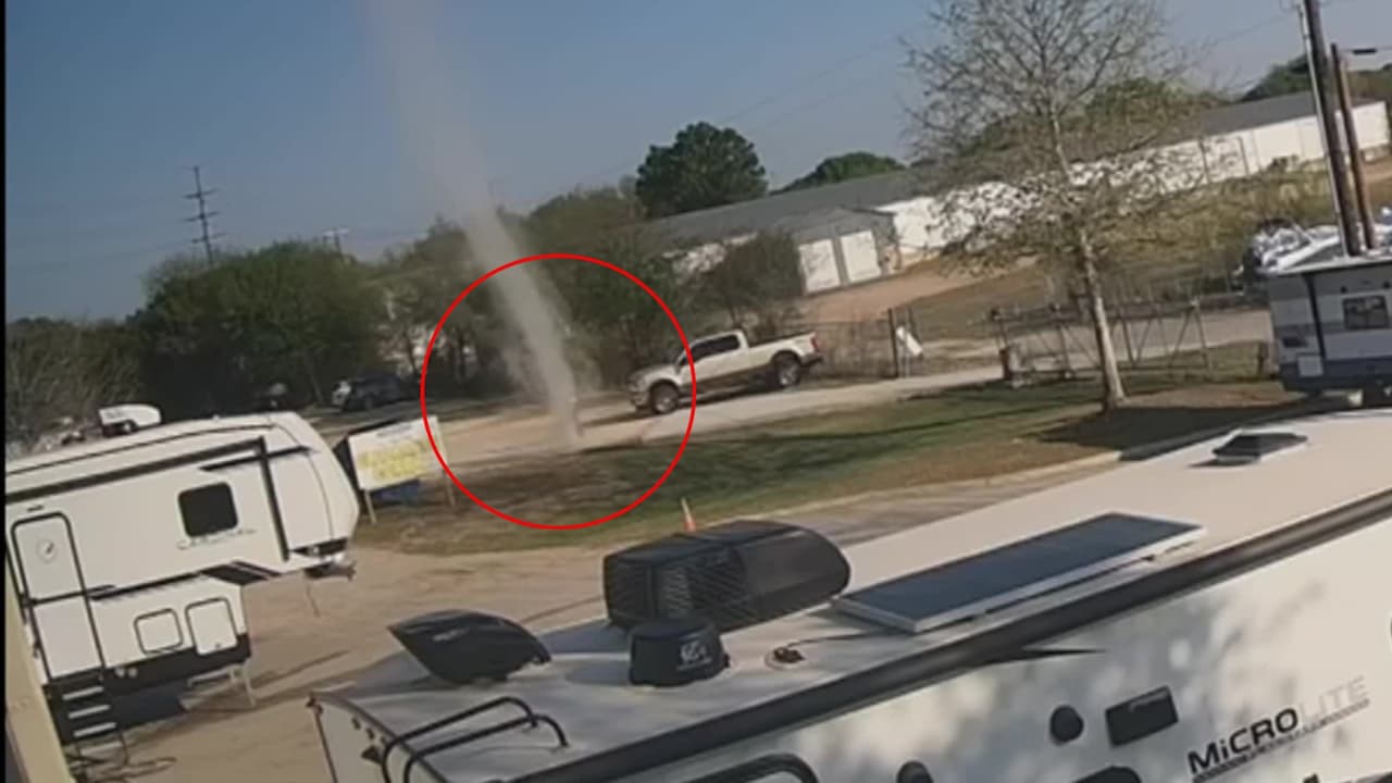 Cámaras de seguridad registraron el momento cuando una mujer en San Antonio, Texas, termina en medio de un remolino durante varios segundos cuando se dirigía a su vehículo. La víctima no sufrió lesiones mayores, pero sí vivió un gran pánico.