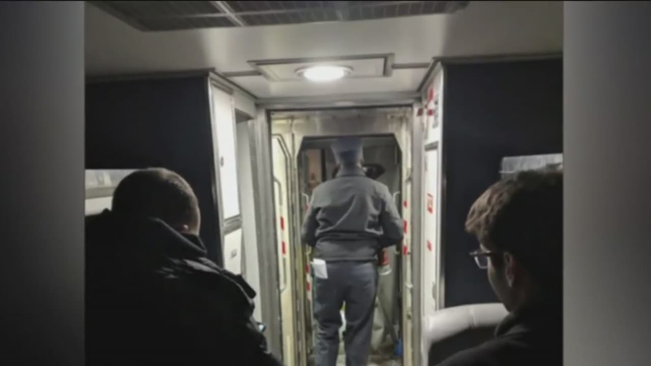 Los casi 300 viajeros tuvieron que esperar bajo congelantes temperaturas durante unas dos horas para que los rescataran.