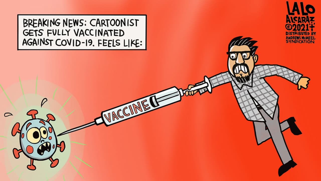 Lalo Alcaraz es un diseñador gráfico y caricaturista latino que busca convencer a la gente de la importancia de vacunarse contra el coronavirus. Alcaraz ha sido finalista del Premio Pulitzer en dos ocasiones y colaboró en la película 'Coco' de Disney.