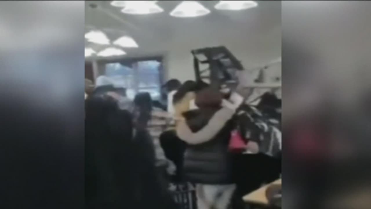 Un testigo grabó el momento cuando comenzó el enfrentamiento entre los comensales del restaurante porque alguien se metió a la fila y le sirvieron el último pedazo de carne del buffet. Se pueden escuchar los gritos de unas 40 personas y los golpes durante la pelea. El video se ha vuelto viral en las redes sociales.