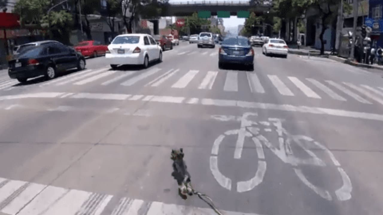 Una ciclista desafió los autos y salvó a un perro que corría a toda velocidad en una transitada vía de Ciudad de México