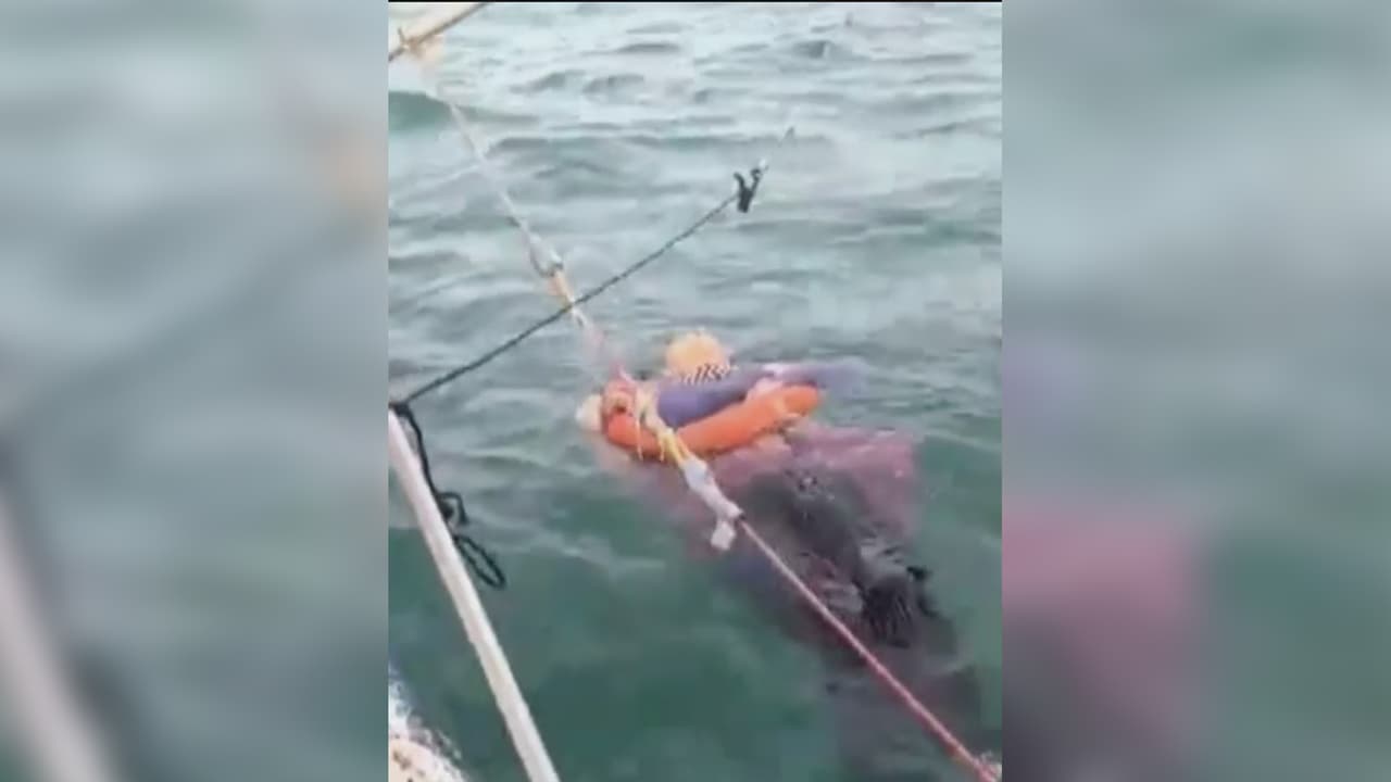 El video del dramático rescate de la colombiana se ha vuelto viral. Aún se investigan las razones por las que la mujer terminó flotando en el caribe colombiano.