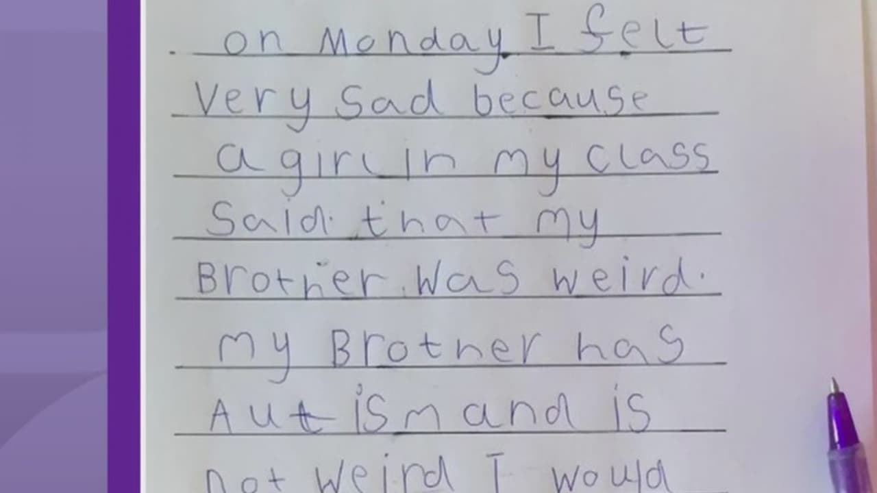La carta de la niña ha conmovido por el mensaje que le deja a la sociedad. Su hermano sufre de autismo y ella reaccionó cuando uno de los compañeros de clase lo llamó “raro”. Dijo que las personas no pueden ser juzgadas por sus discapacidades.