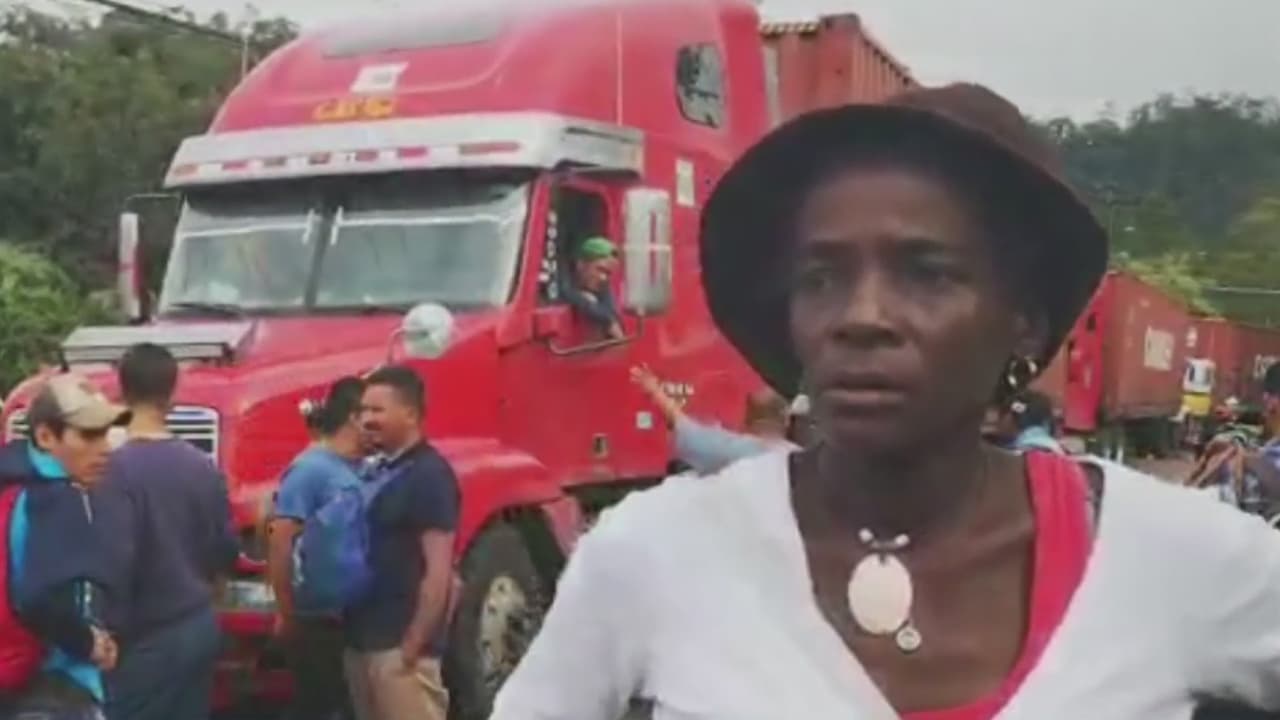 "Yo solo quiero llegar a EEUU así sea para trabajar de barrendera", dice llorando una hondureña que viaja en la caravana migrante