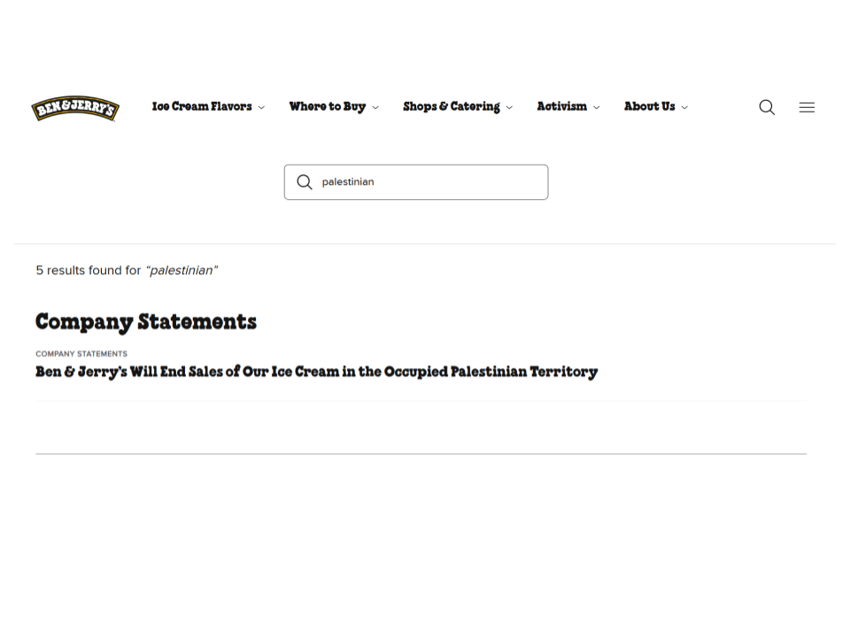 Hicimos una revisión en la página web de la fábrica de helados, en sus comunicados de prensa, y no hay nada que mencione un nuevo lanzamiento con esos diseños, ni tampoco ninguna imagen relacionada con Palestina.Aunque sí dejan claro que son activistas de varias causas, no hay un producto relacionado a las mismas. Una búsqueda dentro de la web, con la palabra palestinian no dio resultados de sabores, sino de algunos reportes de la marca en ese territorio.