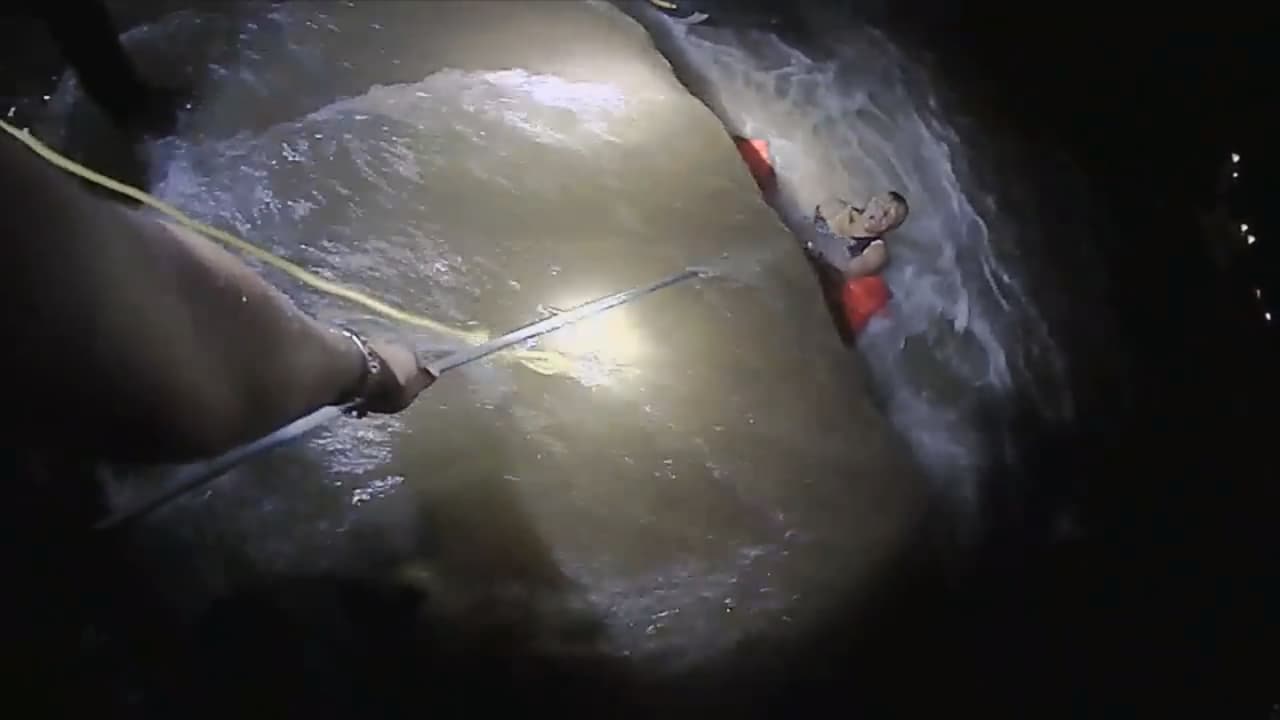 En video quedó grabado cómo varios oficiales, junto a un residente de la zona, ayudaron al hombre y a la mujer para que pudieran salir con vida de la fuerte corriente del afluente en Iowa.