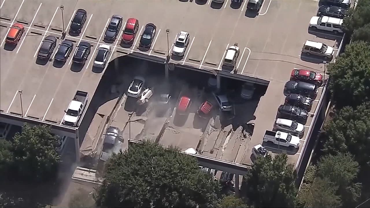 El aparatoso colapso de parte de un estacionamiento en Texas que aplastó 21 vehículos