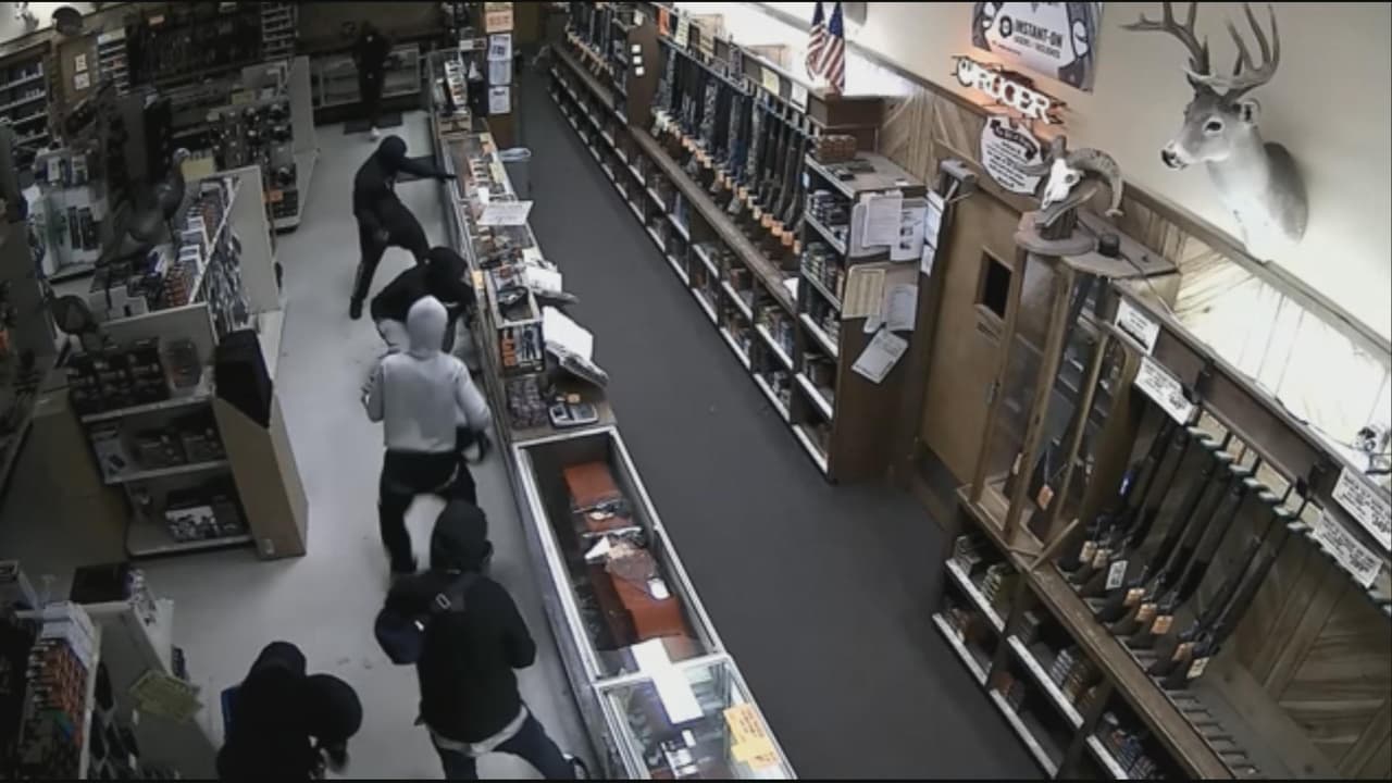 Los delincuentes se robaron más de 50 armas en menos de 3 minutos y todo quedó captado en video.