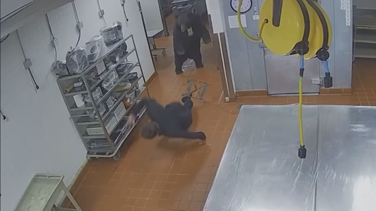 El aterrador encuentro de un guardia con un enorme oso en la cocina de un resort de lujo