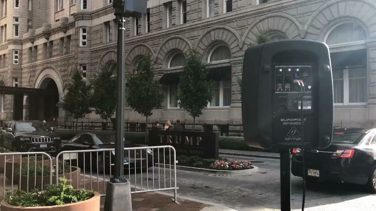El audio de los niños separados que suplican a sus padres es reproducido fuera de un Hotel Trump