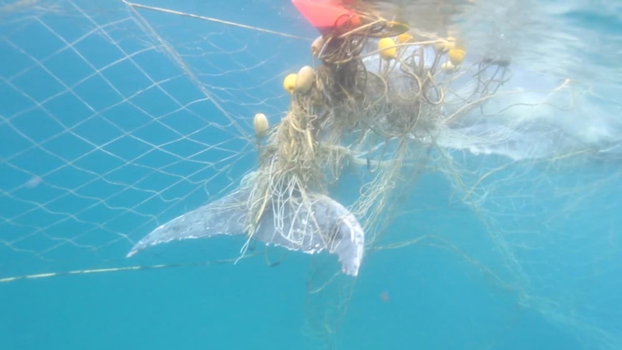 El ballenato que se enredó en una red contra tiburones en Australia y logró ser rescatado