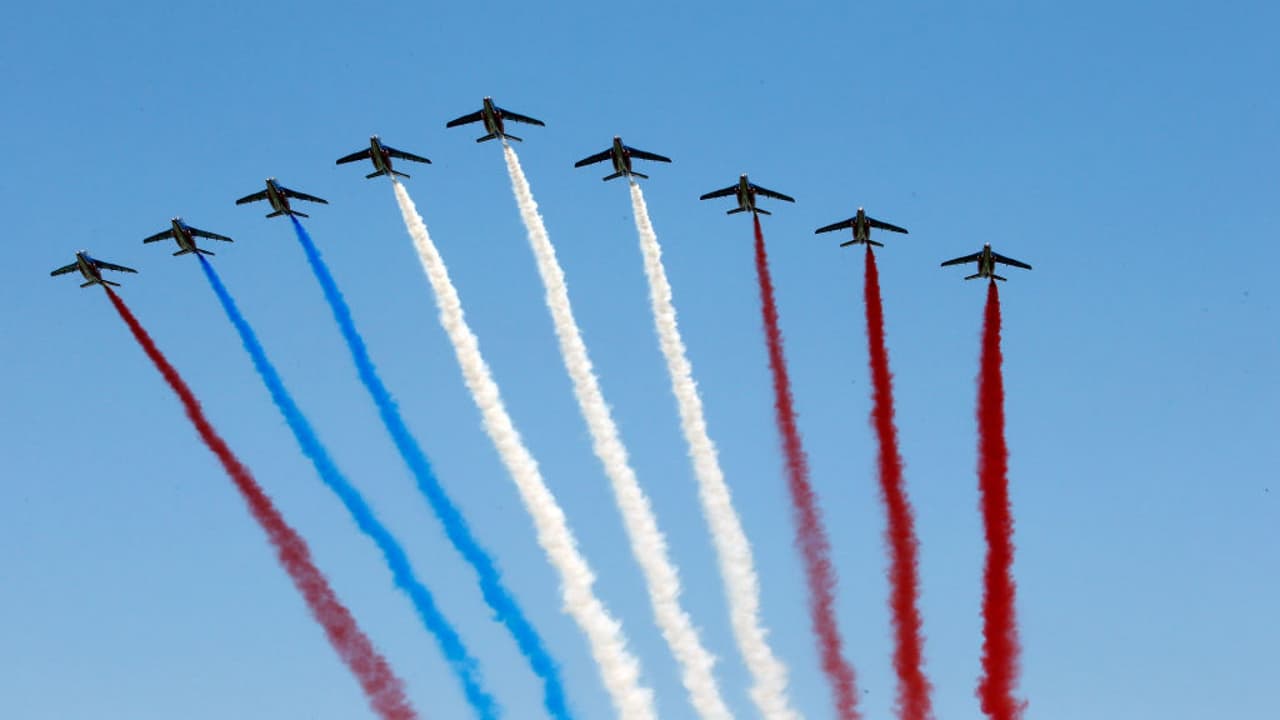 El tradicional desfile transcurre en los Campos Elíseos en la capital francesa con la participación de más de 4,300 militares y el despliegue de 196 vehículos, 237 caballos, 69 aviones y 39 helicópteros.
