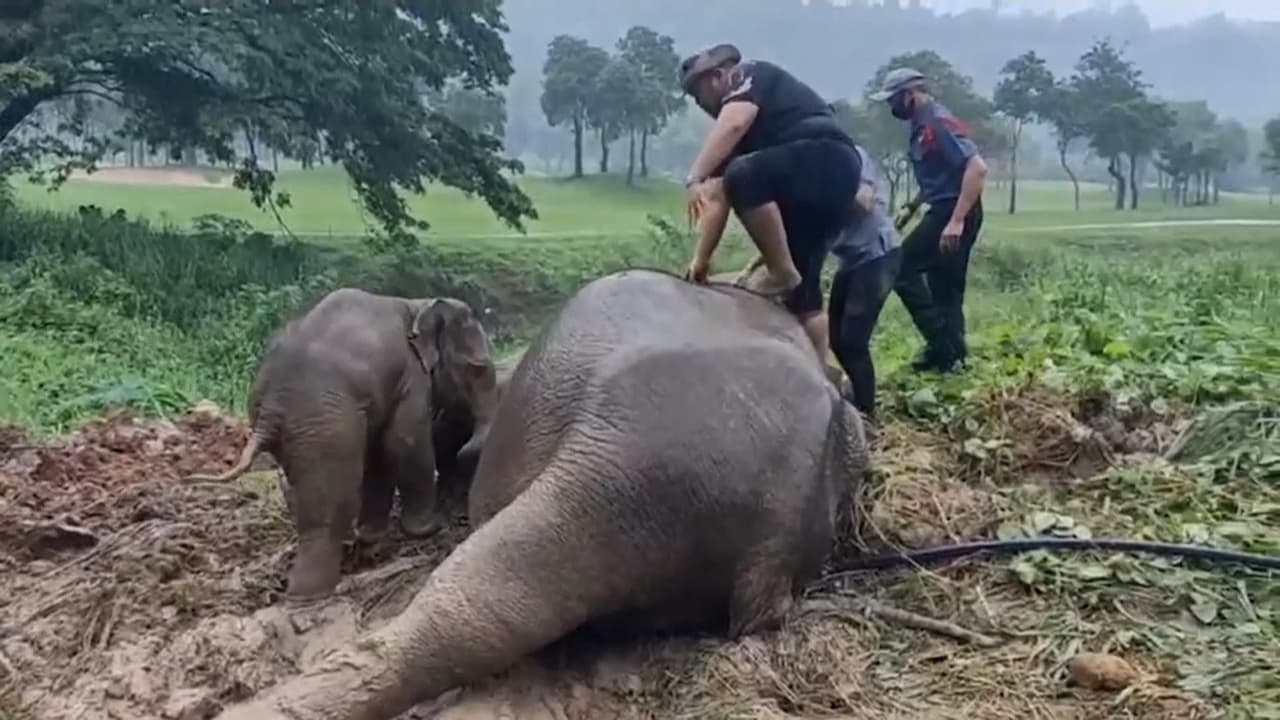Una cría de elefante fue rescatada después de caer en una alcantarilla en Tailandia, después de que su madre fuera sedada para poder realizar la operación. Sigue las últimas noticias en Univision.