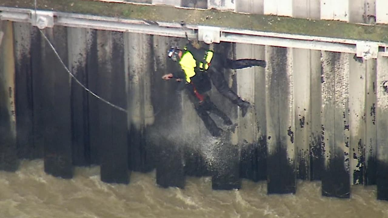 Cámaras captaron el momento en que un hombre es rescatado del río Los Ángeles, desbordado por las intensas lluvias. El individuo fue trasladado a un hospital para ser tratado por hipotermia. Más información en Univision Noticias.