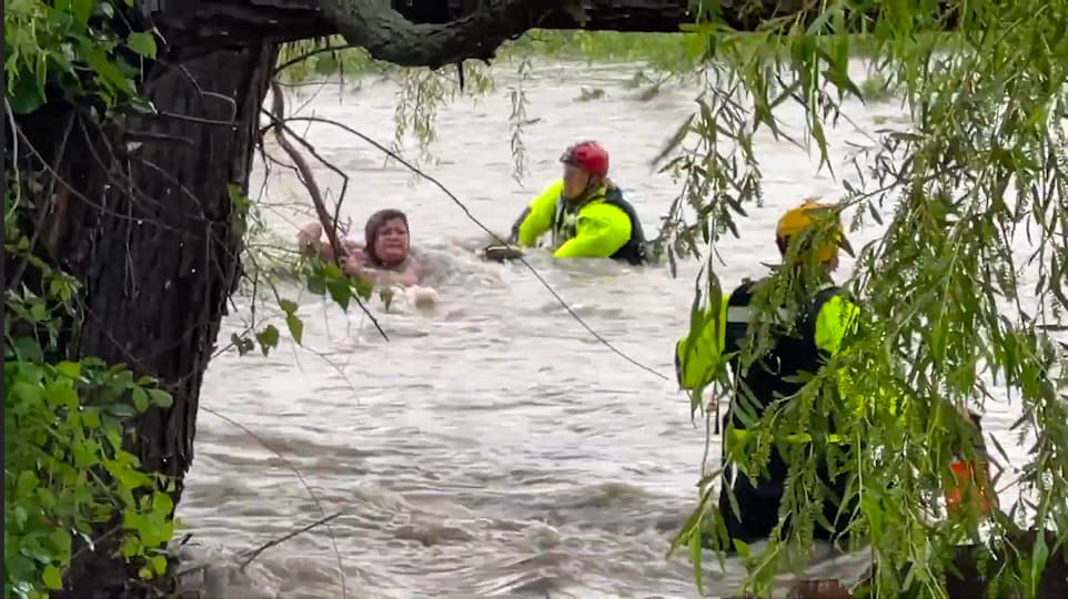 El dramático rescate de una mujer que se aferraba a un arbusto durante una inundación repentina en Texas
