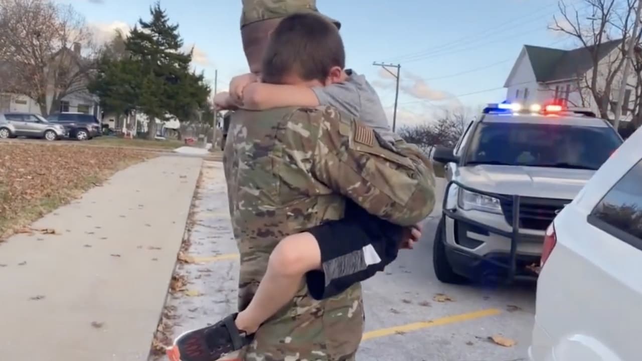 El emotivo momento en que un padre militar sorprende a su hijo tras meses sin verse