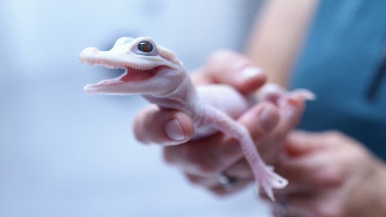 El caimán hembra blanco, considerado extremadamente raro, pesa apenas 96 gramos y se encuentra en perfecto estado de salud. El leucismo es una particularidad genética tan rara en estos animales que solo hay siete de ellos en el mundo.