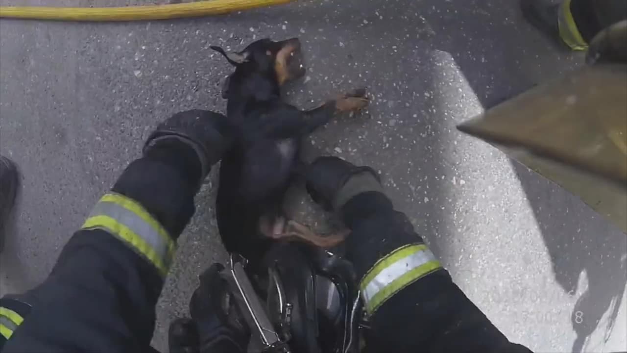 Chico quedó atrapado dentro de la vivienda, pero afortunadamente los bomberos le salvaron y el incidente quedó grabado en sus cámaras corporales.
